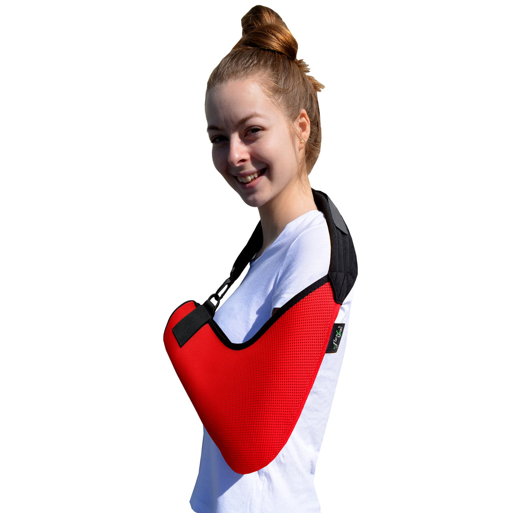Full shoulder, arm and wrist support thanks to an extra deep sling pocket especially important when supporting a broken collarbone. The sling extends to the middle of the little finger, important when supporting a broken wrist and/or arm.