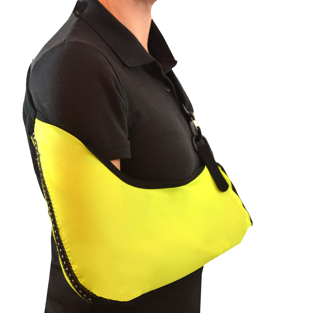 Avoid knocks, be seen in this high-viz breathable arm sling. Offers full shoulder support thanks to extra depth at the elbow, especially important when supporting a broken collarbone.