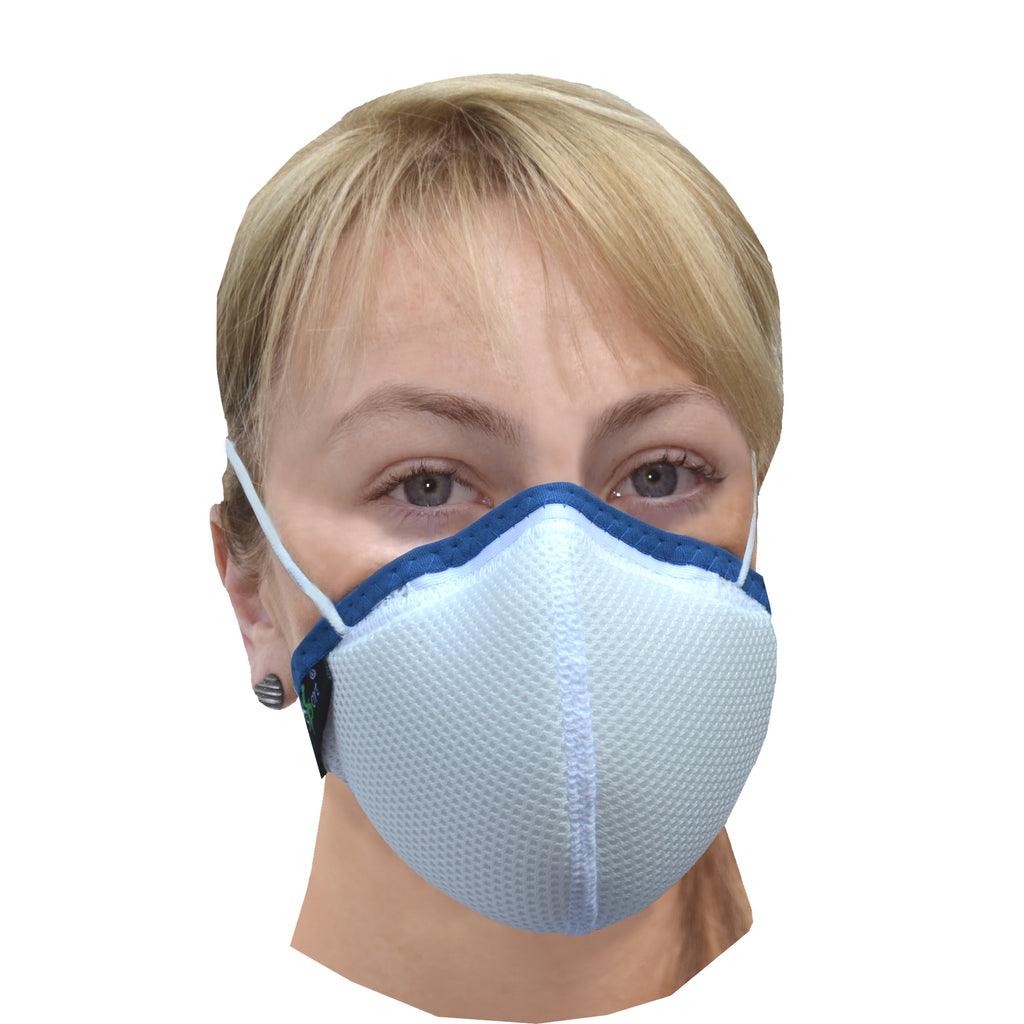 - The mask fabric is of a woven construction which makes it easy to breathe through but difficult for an airborne virus to get through. This provides both protection for the wearer AND for others around.
