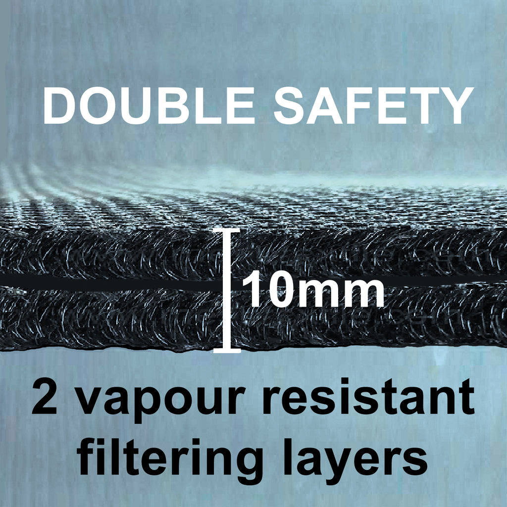 3D fabric technology - two layers of built-in vapour resistant filtration - DOUBLE SAFETY CONFIDENCE.